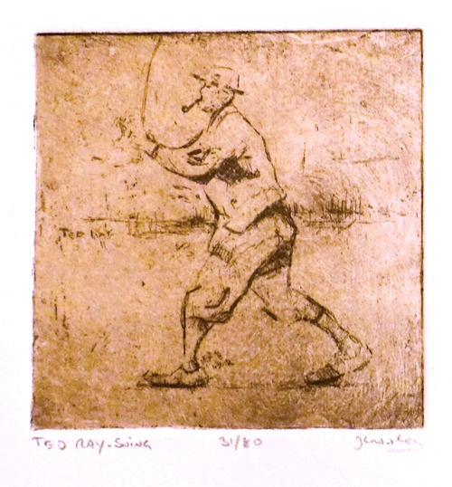 Etching is a method of making prints from a metal plate, into which the design has been incised by acid. The design holds the ink and when the plate is applied to moist paper, the ink transfers to the paper, making a finished print.